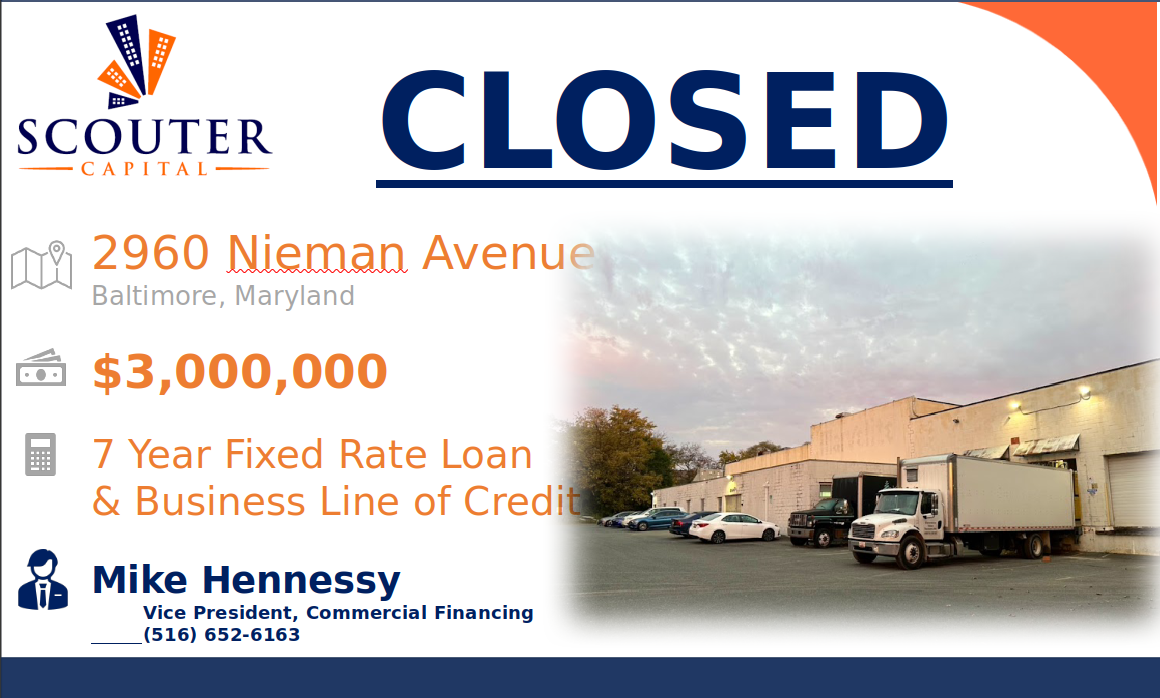 7 Year fixed-rate permanent loan plus working capital facility issued by a Regional Bank to acquire an owner-occupied, 47,000 SF industrial facility. Scouter Capital facilitated this transaction for the client. Contact us for more information.
